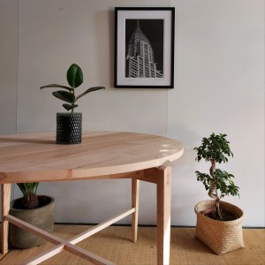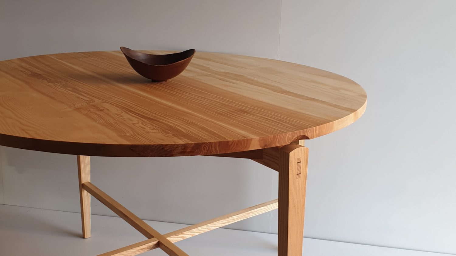 Tsuki Table. Inspired by the lunar cycle with it circular top and half crescent leg detail.