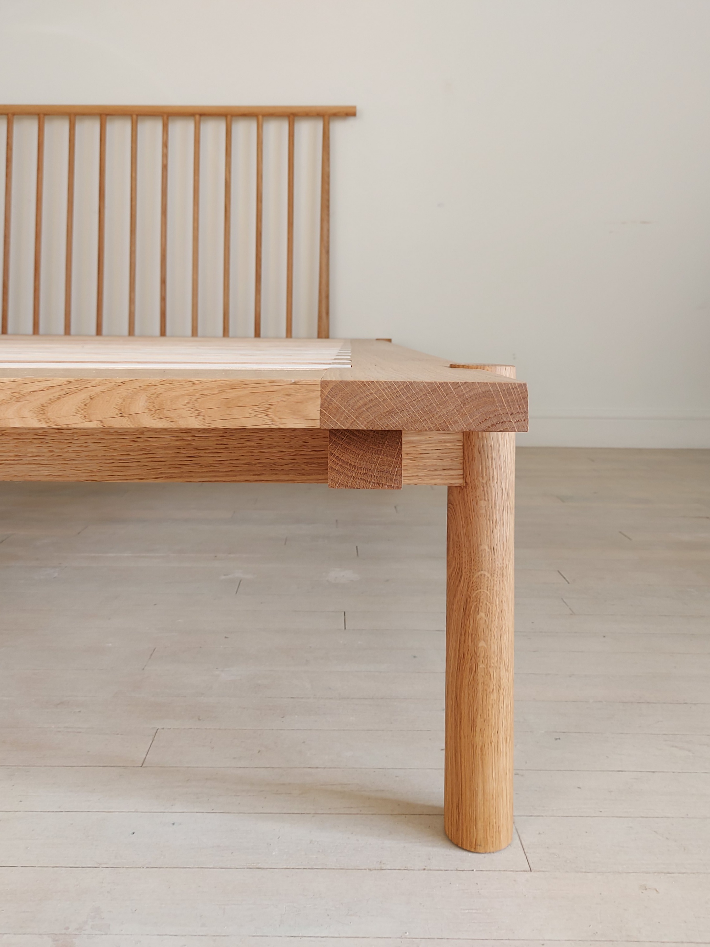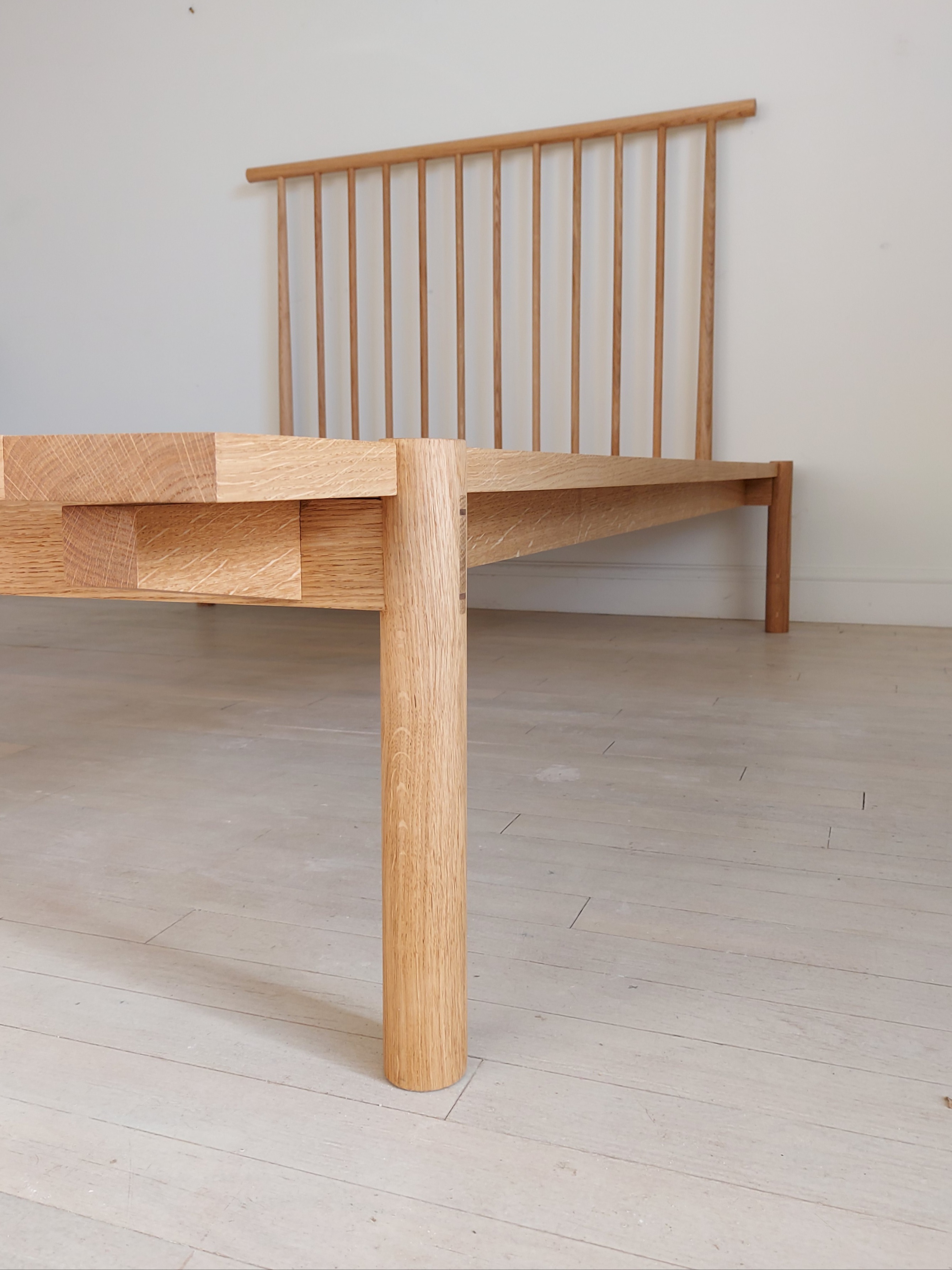 This contemporary bed is ideal for adding a clean, modern touch to a bedroom. Carefully crafted by hand and portrays a calm clean aesthetic.