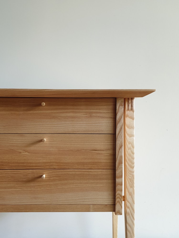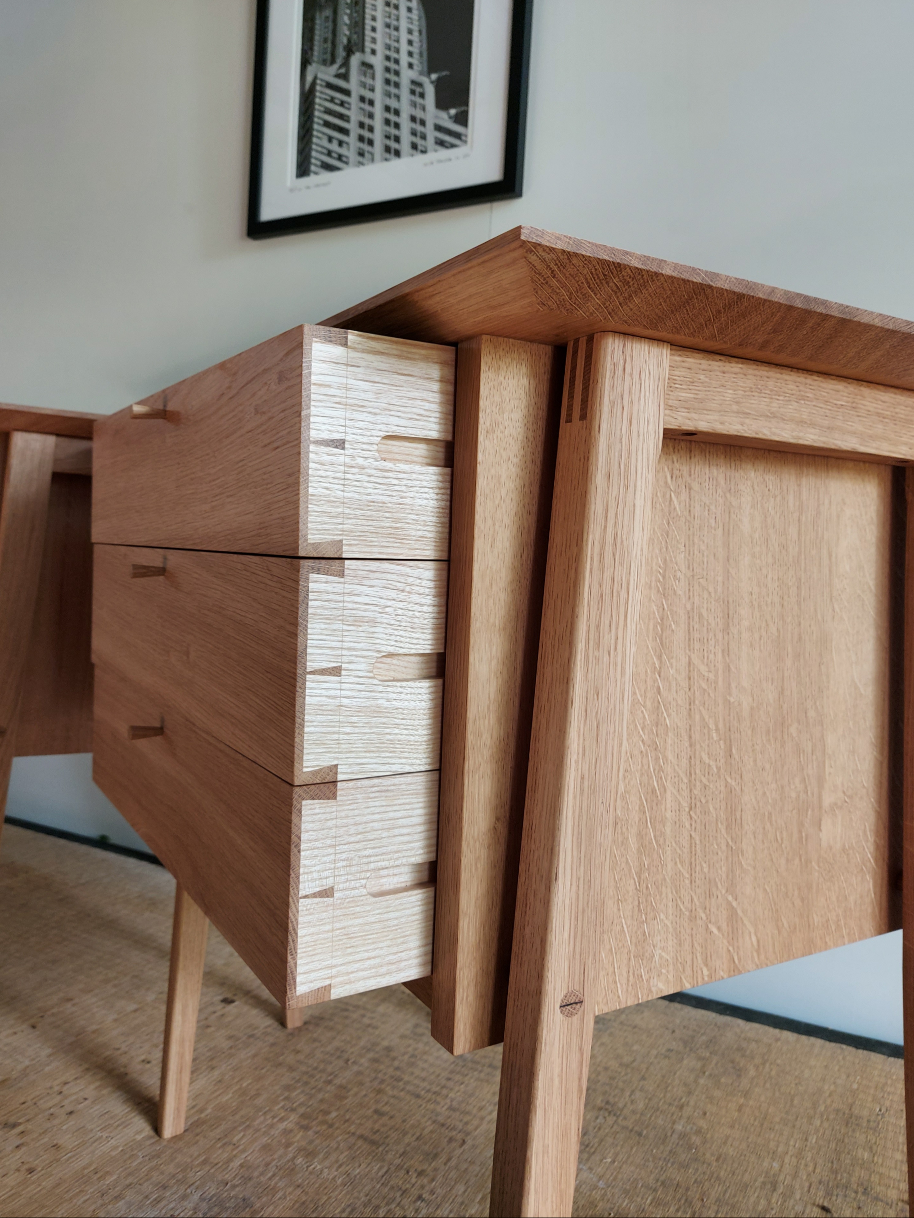 Features double bridle legs, wedge tenons and blind dovetailed drawsers.